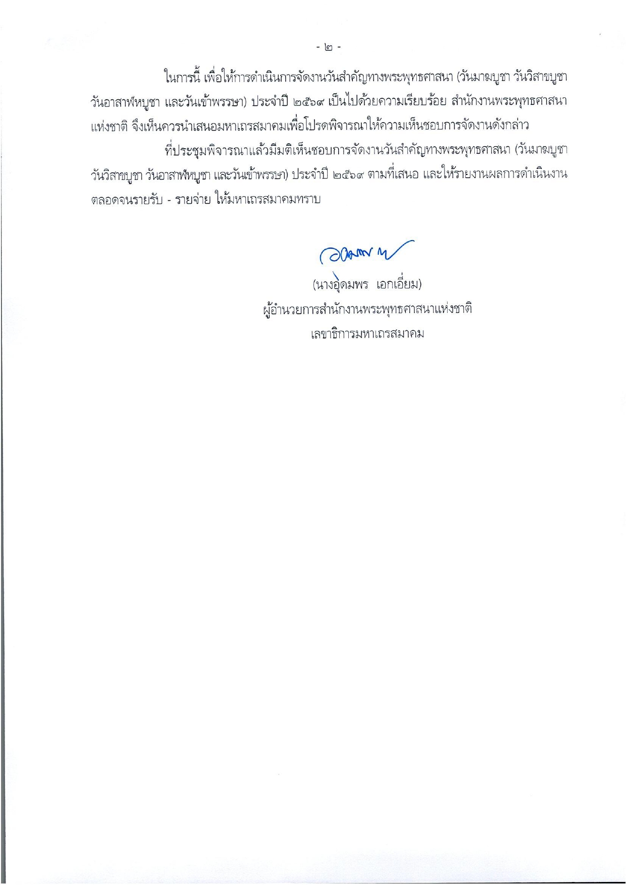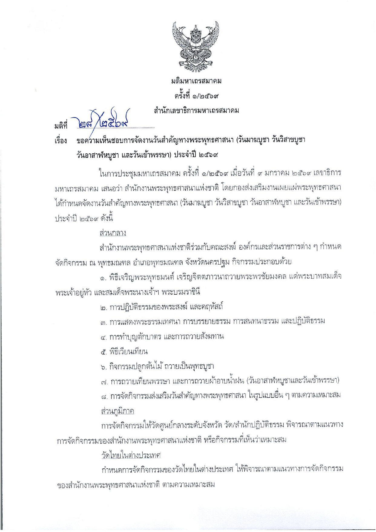 มติมหาเถรสมาคม : เรื่อง แนวทางการจัดงานวันสำคัญทางพระพุทธศาสนา (วันมาฆบูชา วันวิสาขบูชา วันอาสาฬหบูชา และวันเข้าพรรษา) ประจำปี 2569
